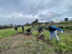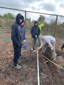 On March 24, when they got to Fertile Groundworks, it was pouring rain. Only 4 scouts arrived to the event out of the 11 scouts who registered, accompanied by ASMs Mr. Tan, Mrs. Chao, and Mr. Narashiman. They were directed to the new dig site where they measured the ditch’s length and distance from other beds before digging a small trench using shovels, picks, and long steel poles.