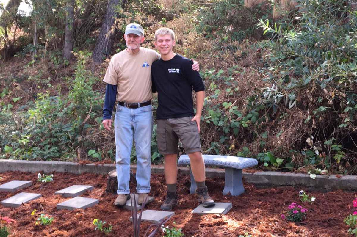 For Anthony Zorovic Eagle project, the project revitalized the back area of San Ramon Valley Bible Church. Where it was once overgrown with weeds, Troop 888 helped to create a garden, covering the previous soil with weed carpet and new mulch, as well as planting a variety of drought and shade resistant plants. Finally, we added stepping stones and a cement bench to create some more permanent features.